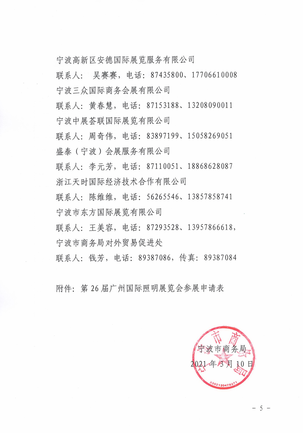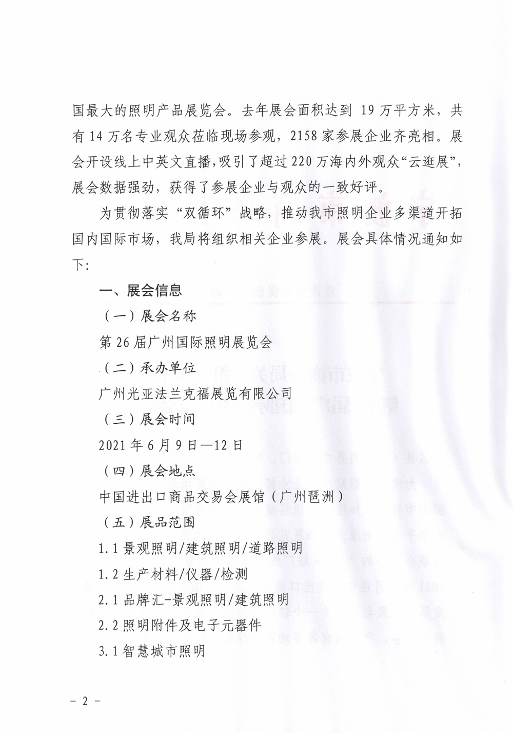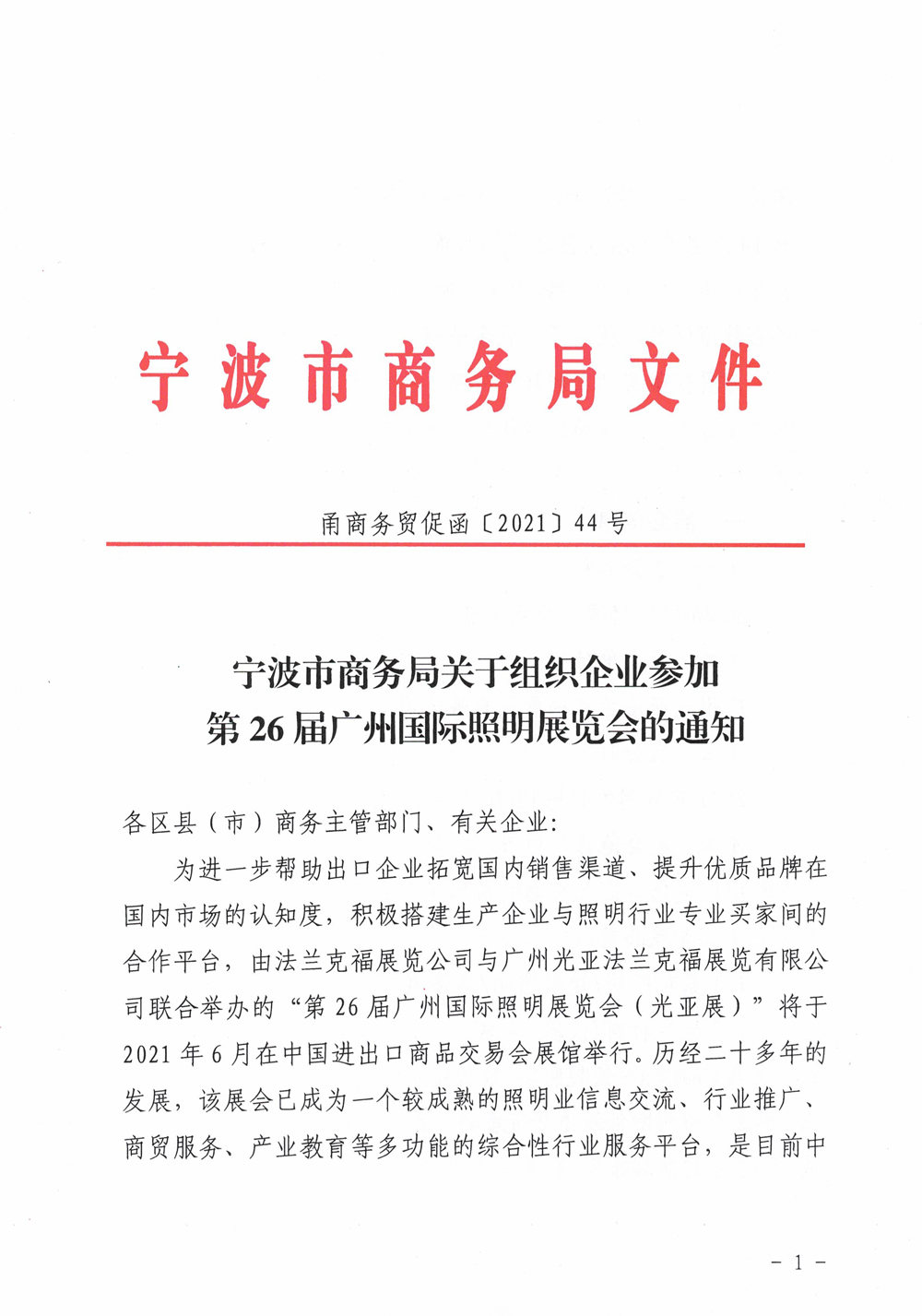 寧波市商務(wù)局關(guān)于組織企業(yè)參加第26屆廣州國(guó)際照明展覽會(huì)的通知