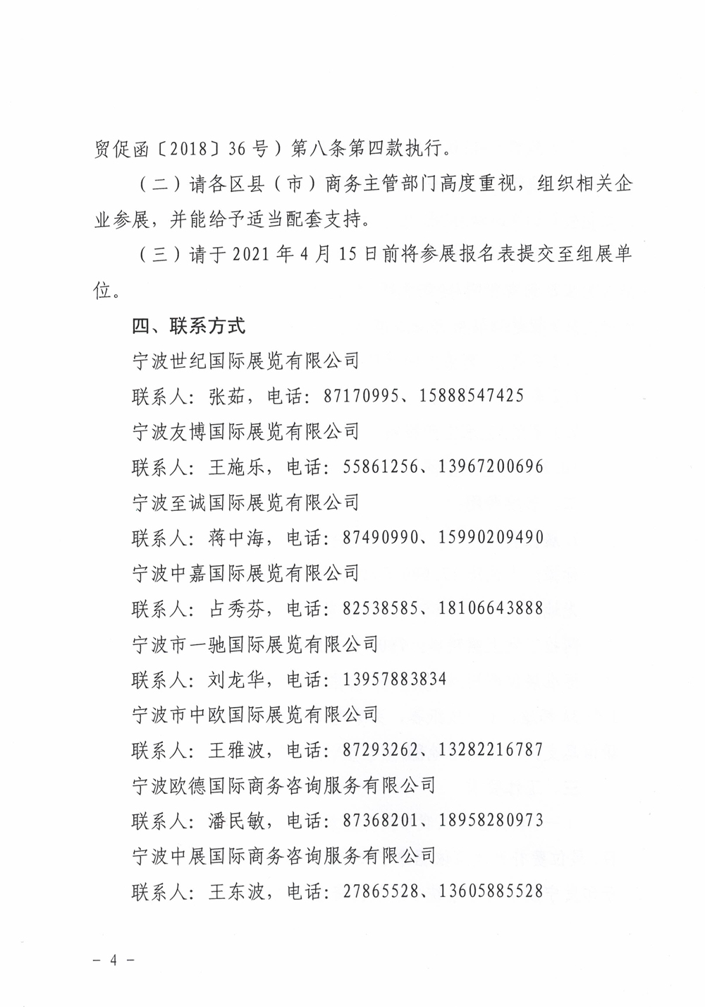 寧波市商務(wù)局關(guān)于組織企業(yè)參加2021上海法蘭克福汽配展的通知