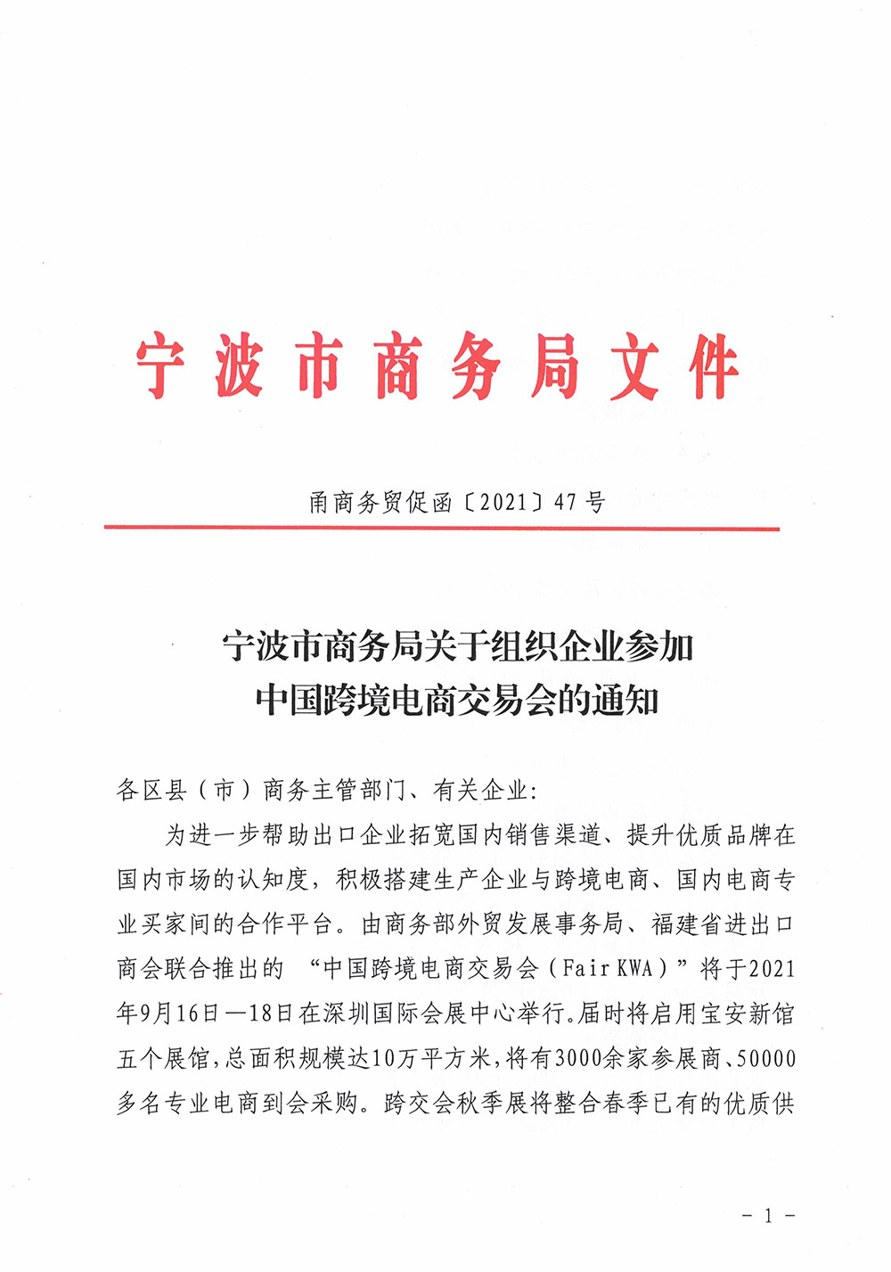 寧波市商務(wù)局關(guān)于組織企業(yè)參加中國跨境電商交易會的通知
